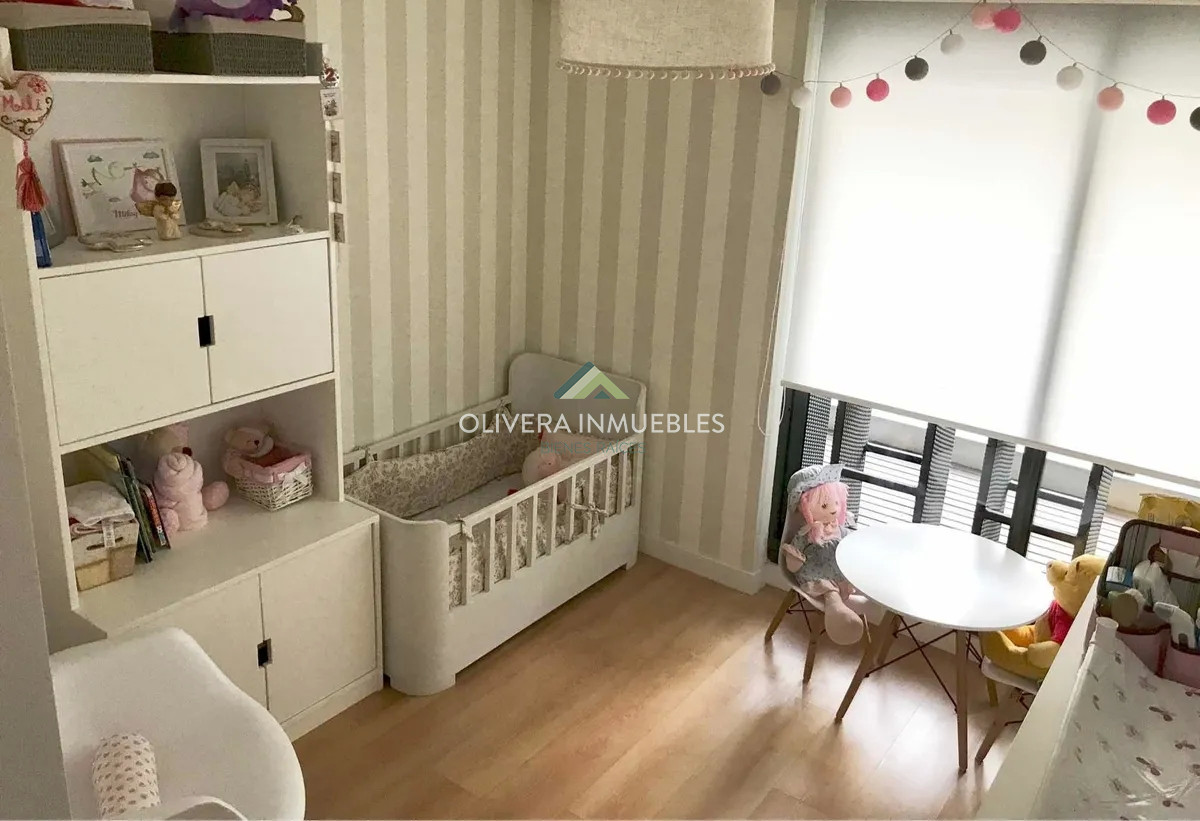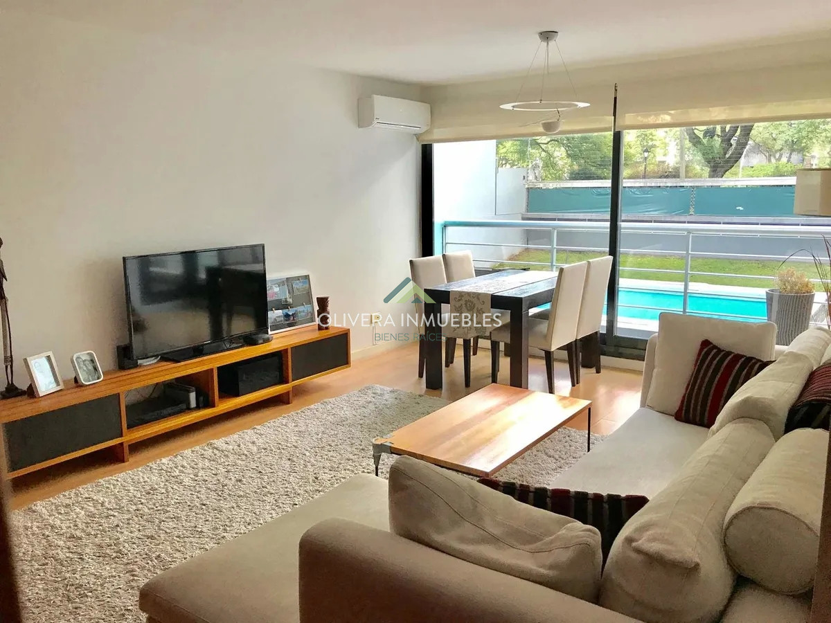 Apartamento de dos dormitorios y dos baños. Living comedor con amplio balcón. Cocina con salida a patio con parrillero propio Dos dormitorios, el principal en suite. El edificio cuenta con salón barbacoa, gimnasio, laundry y piscina. Garage muy amplio