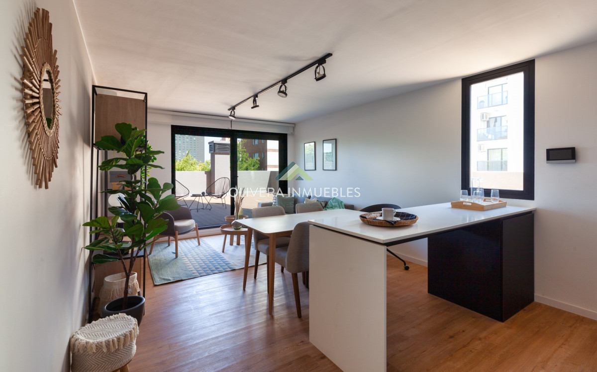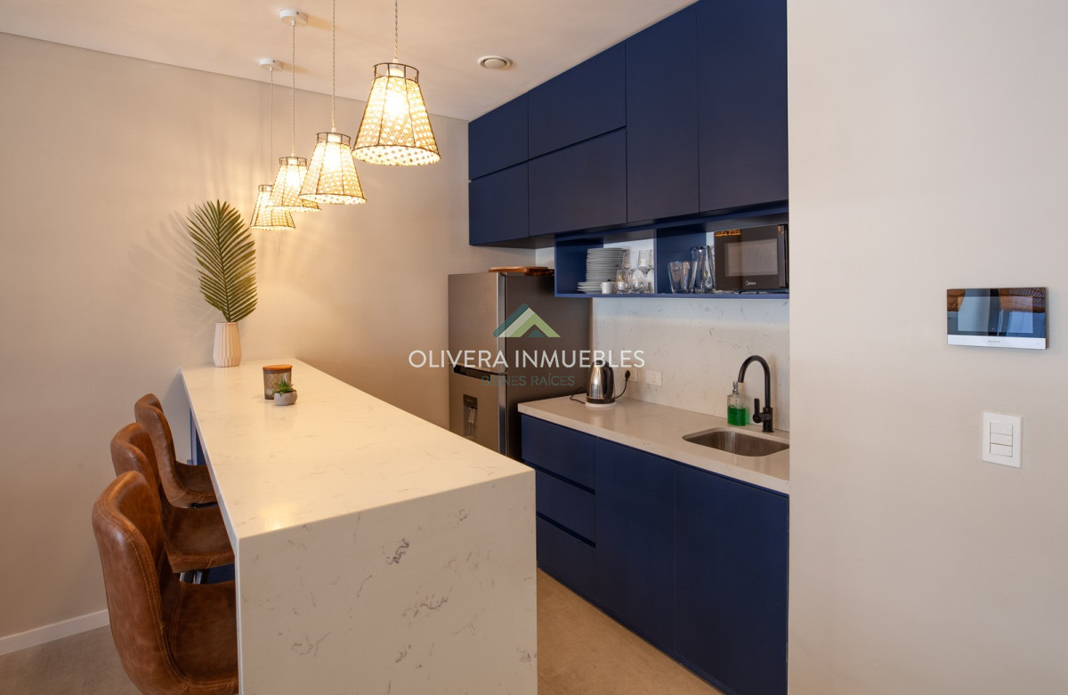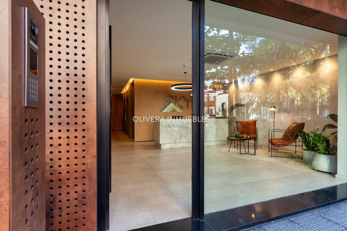 Venta de Apartamento de 2 Dormitorios en Punta Carretas, Montevideo. A estrenar con garage! Espectacular apartamento de 2 dormitorios en Piso 4 (Unidad 404). El mismo se ubica a el lateral y cuenta con doble orientación por ser esquina. Con 63,30 m2 internos y terraza de uso exclusivo de 5,6 m2. Distribuido en: + Living comedor con ventanal y salida a terraza. + Cocina integrada de concepto abierto. + Moderno baño completo. + Dormitorio principal con baño en suite. * Incluye Garage simple Nro 5. SKY Punta Carretas: Se proyecta en uno de los mejores barrios de Montevideo, rodeado de locales gastronómicos, comerciales y hoteleros de los más exclusivos de la ciudad. En un entorno con muchos espacios verdes y excelente conectividad con el resto de la ciudad. A solo metros del Shopping Punta Carretas y el extraordinario club de Golf. Amenities: Salón de Usos múltiples y espacios verdes | Jardín | Juegos para niños | Pileta con borde infinito | Solárium con vistas al Río | Gazebo y parrillero | Gimnasio equipado con máquinas de última generación | Micro cine | Laundry. Otros gastos NO incluidos en el precio: - Gastos de ocupación: 4% (incluyen gastos de conexión, alhajamiento de espacios comunes, reglamento de co-propiedad y plano de mensura). - Honorarios Inmobiliarios: 3,66% IVA Incl.